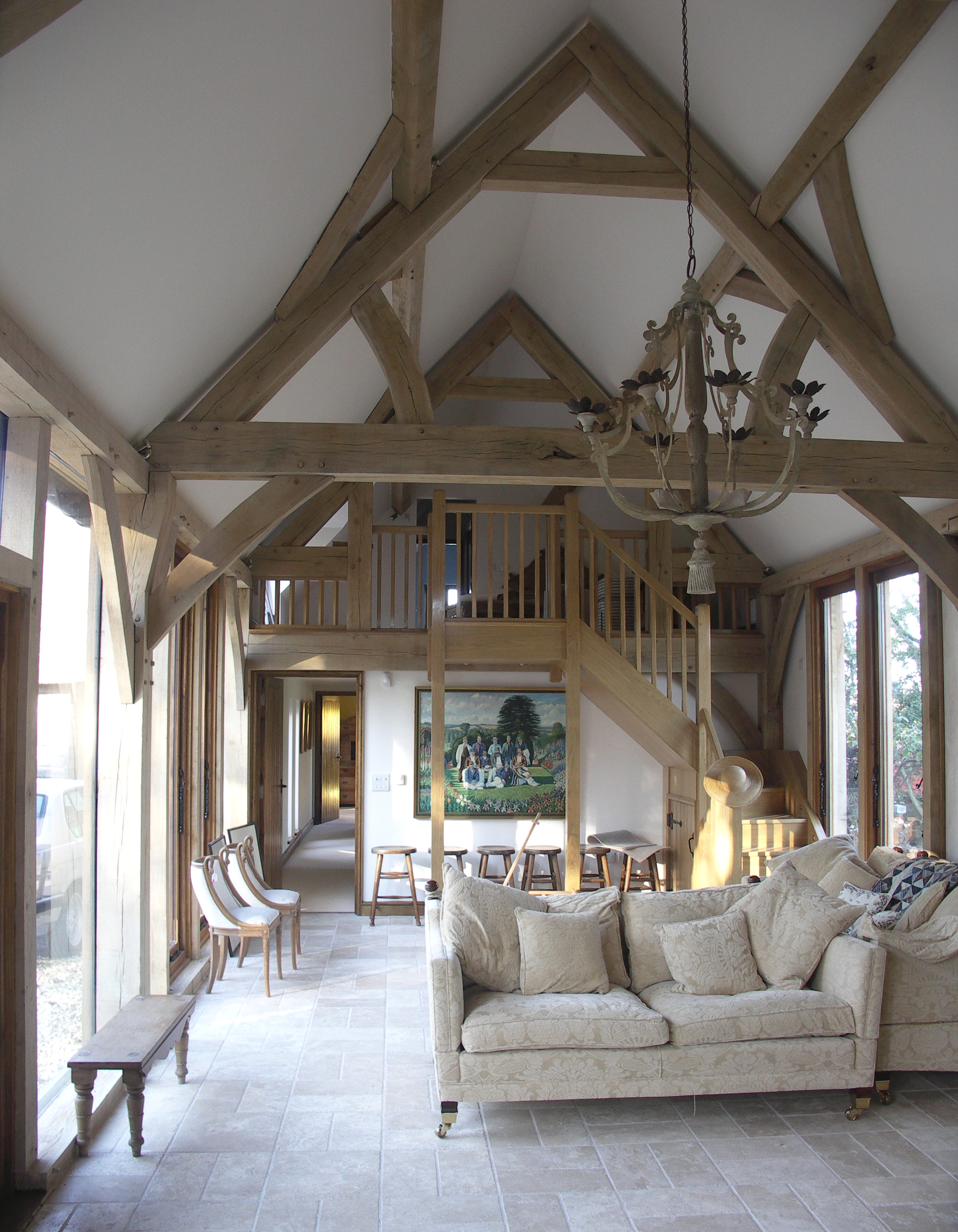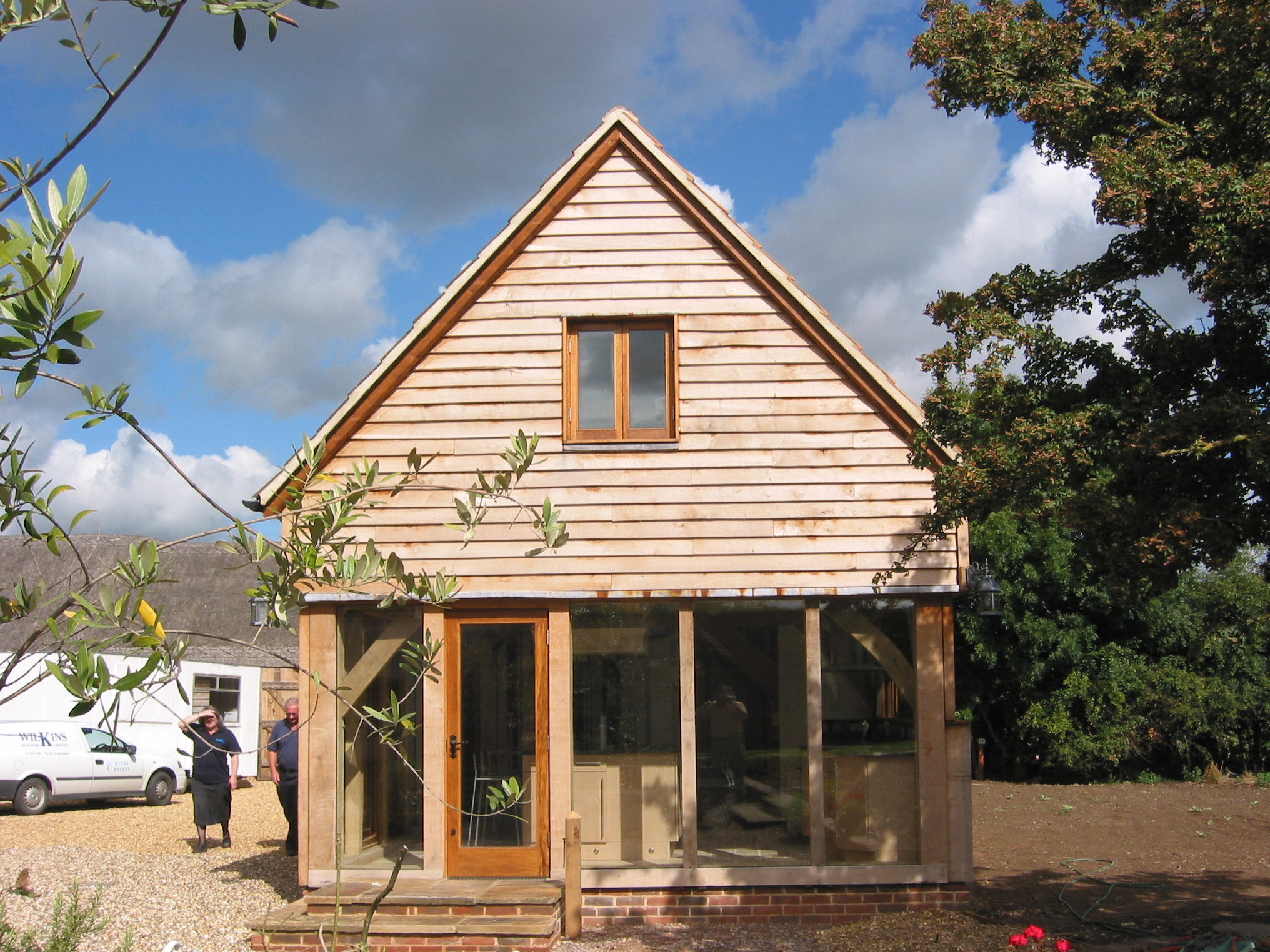 A new ‘green oak’ barn within the courtyard of a Grade 2 Listed thatched cottage and outbuildings. We obtained detailed listed building consent, and continued a dialogue with the local officer during the course of the project. The oak framing was undertaken by carpenter Oak & Woodland. The exterior of the building has been clad in horizontal oak boarding, with oak windows, doors and staircases.